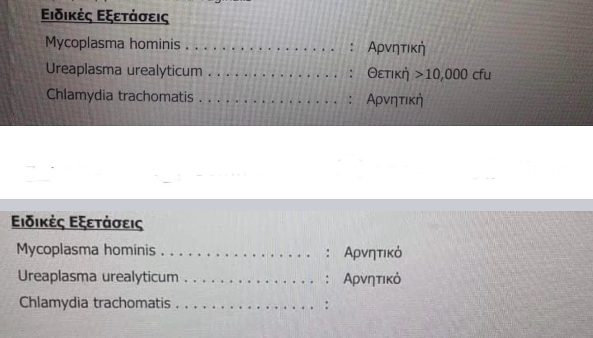 Ενδοκολπική λοίμωξη από ουρεόπλασμα πριν και μετά την παρέμβασή μας με ομοιοπαθητική αγωγή, διάρκειας μόνο 7 ημερών, χωρίς ανεπιθύμητες ενέργειες, εργαστηριακά επιβεβαιωμένη.